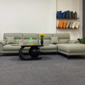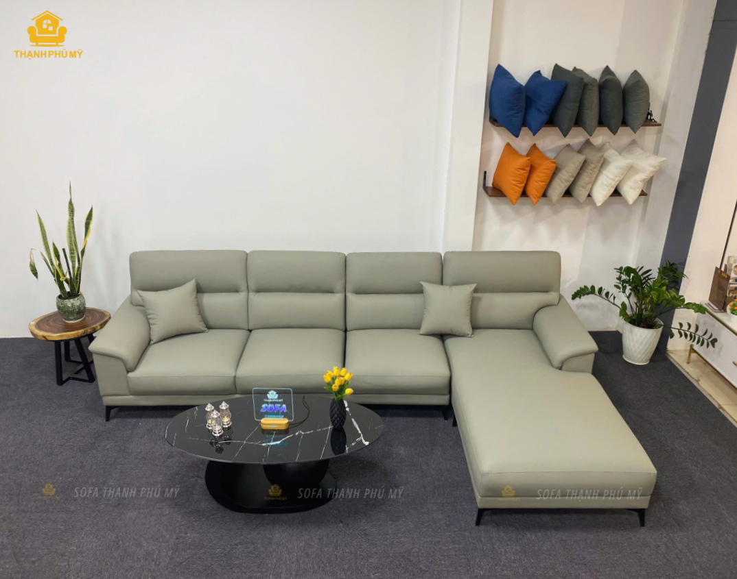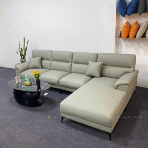Sofa Góc Da Chống Trầy Màu Xám Ánh Xanh Hiện Đại