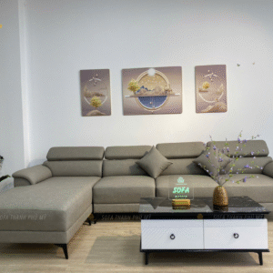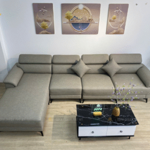 - Màu sắc: Sofa góc màu xám loang nhạt. Màu xám loang nhạt là một màu sắc nhẹ nhàng và không bao giờ lỗi thời. Sofa màu xám loang nhạt mang đến vẻ đẹp thanh lịch, trang nhã và sáng ấm cho không gian phòng khách.