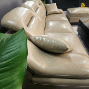 - Màu sắc: Sofa màu rêu nhạt phủ bóng – Đây là một màu sắc mới lạ thiên sáng. Đặc biệt phù hợp với thiết kế nội thất theo phong cách tối giản và hiện đại. Sofa màu be nhạt phủ bóng phù hợp với tường và nội thất có tone màu sáng ấm như màu mỡ gà, vàng nhạt, trắng cổ, nâu nhạt, cam phớt, . . .