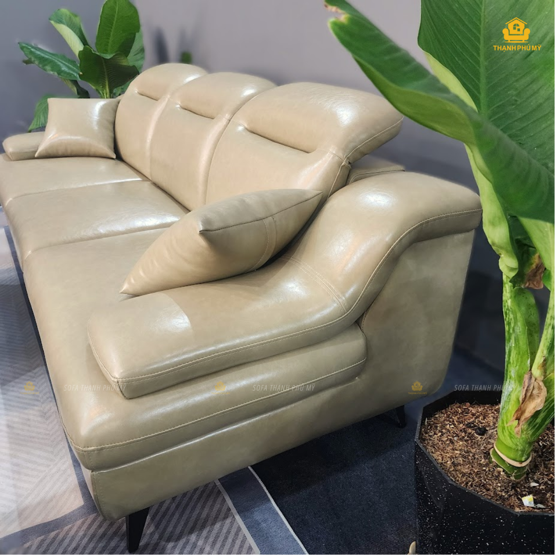 Lần này, Sofa Thạnh Phú Mỹ giới thiệu mẫu Sofa văng chữ I sự kết hợp mới lạ giữa màu rêu nhạt tươi trẻ với chất liệu da được phủ 1 lớp bóng nhẹ kháng bám bụi, chống xước tốt, bền màu. Đây là mẫu sofa văng đáng được cân nhắc cho những căn hộ, shophouse hoặc phòng khách có diện tích vừa và nhỏ hoặc ở khu vực tum cầu thang, phòng relax, . . .