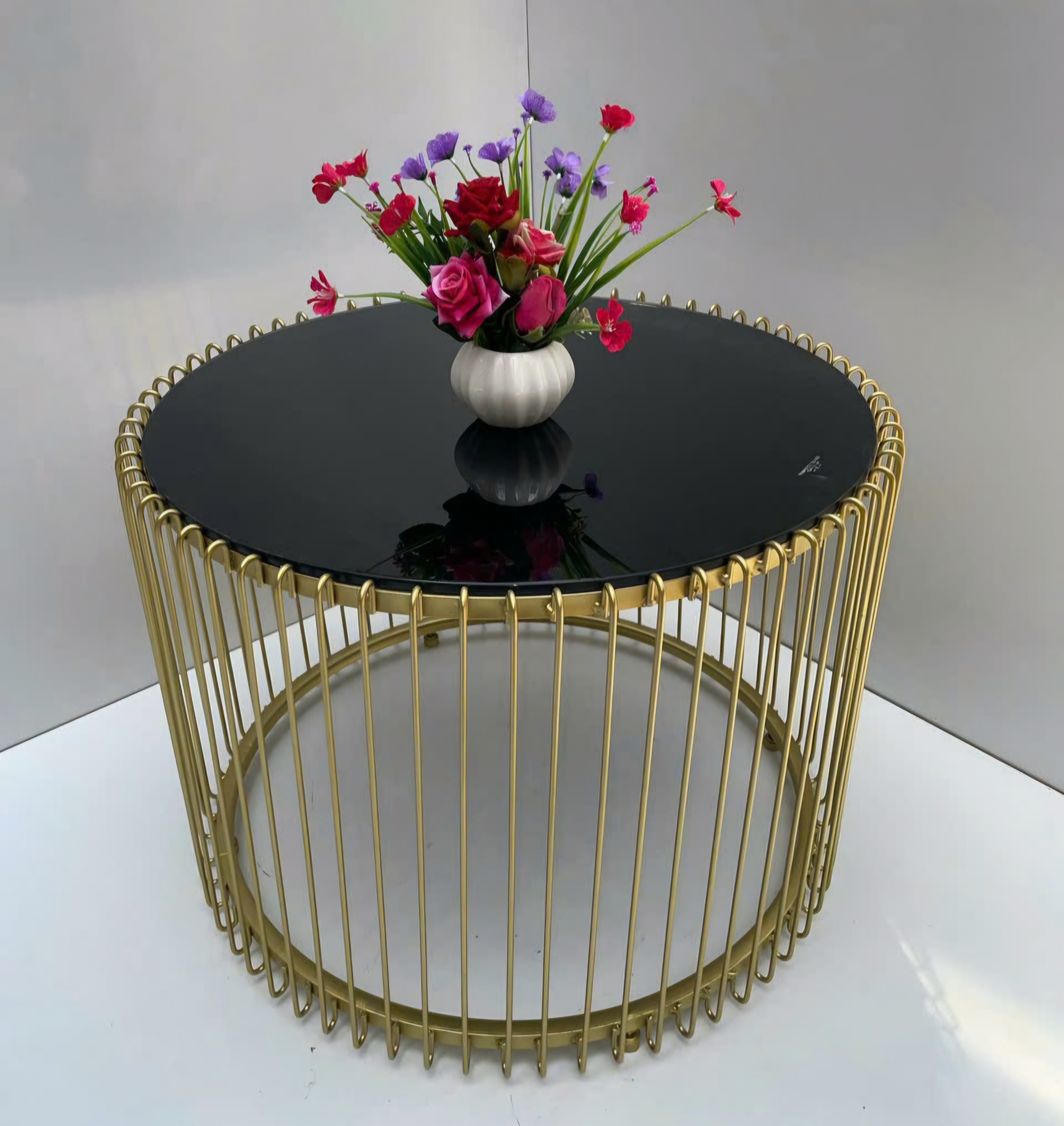 - Chất liệu: Mặt kính cường lực hình tròn với khung chân sắt sơn tĩnh điện.