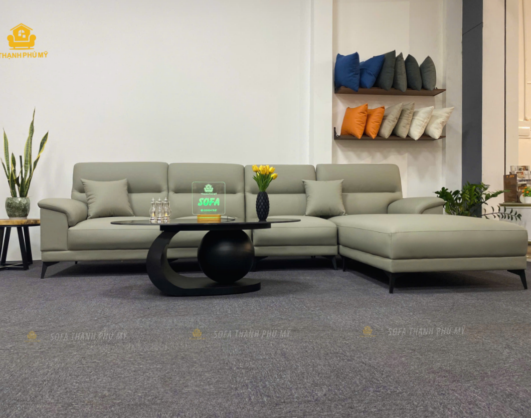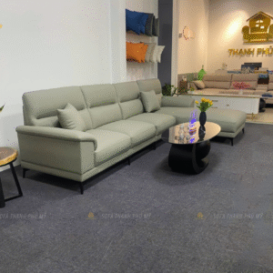 Sofa Góc Da Chống Trầy Màu Xám Ánh Xanh Hiện Đại